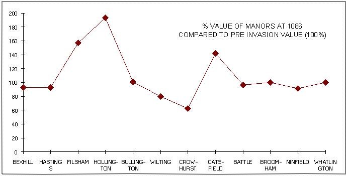 3) Those whose value decreased at the time of the Invasion and subsequently increased, recovering some or all of the lost value in the 20year period. The values for the core data for the study, since the reduction in value shown at the time of the Invasion is assumed to be caused by the presence of the Norman army sustaining itself.