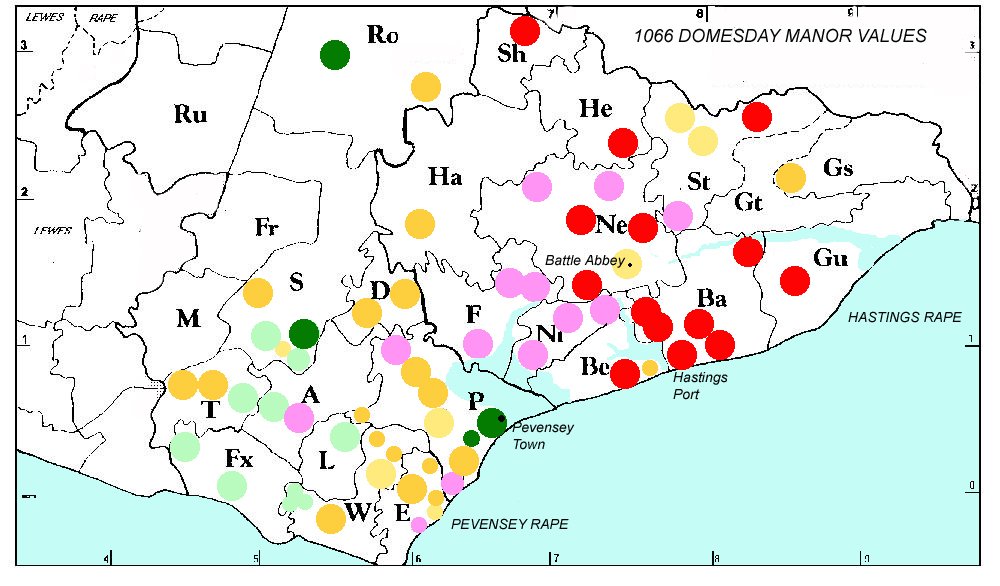 In order to evaluate the information supplied in the Domesday Survey it is necessary to look at the geographical spread of the manors in the Hastings and Pevensey Rapes at the time of Domesday (see Secrets of the Norman Invasion One.